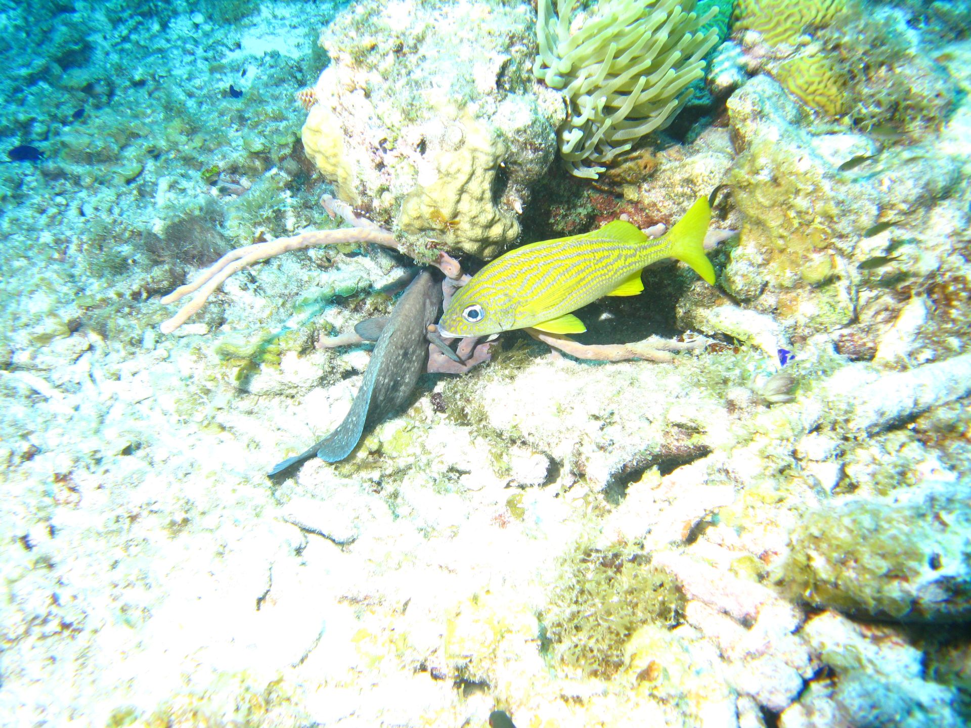 Our second to last day on the Island, and being the last day of diving, we went to Klein Curacao (little Curacao). An uninhabited Island near Curacao. It has some nice diving on the west side. The east isn’t really suitable for diving. We made 2 dives on the west side. And we had lunch (a barbecue near the beach). The boat trip to get there was a bit choppy on the way there but after a while the wind settled.