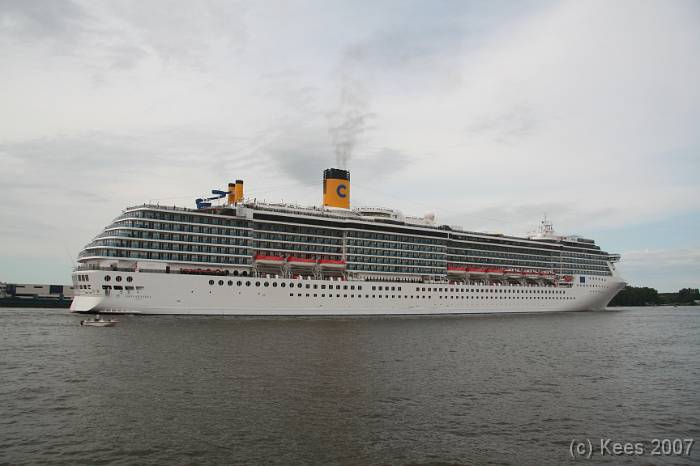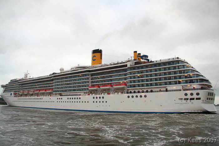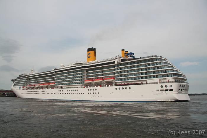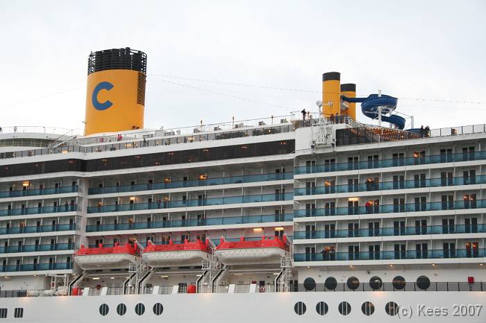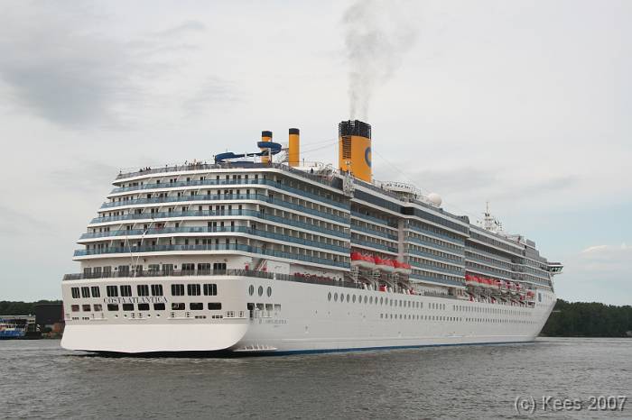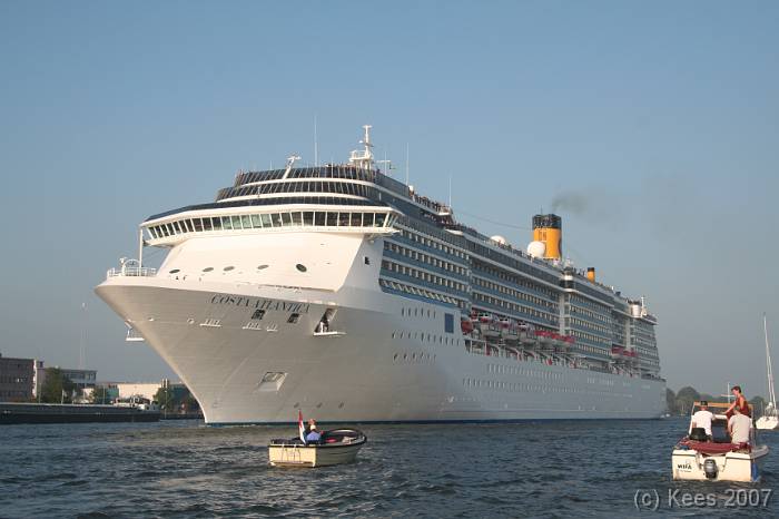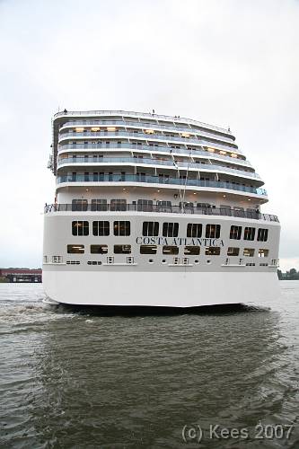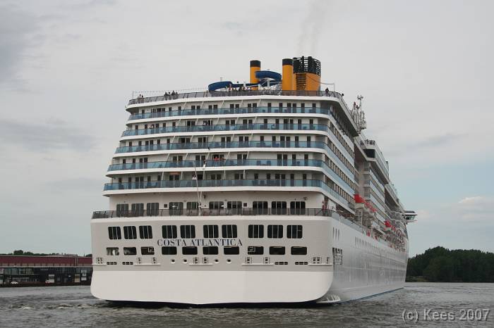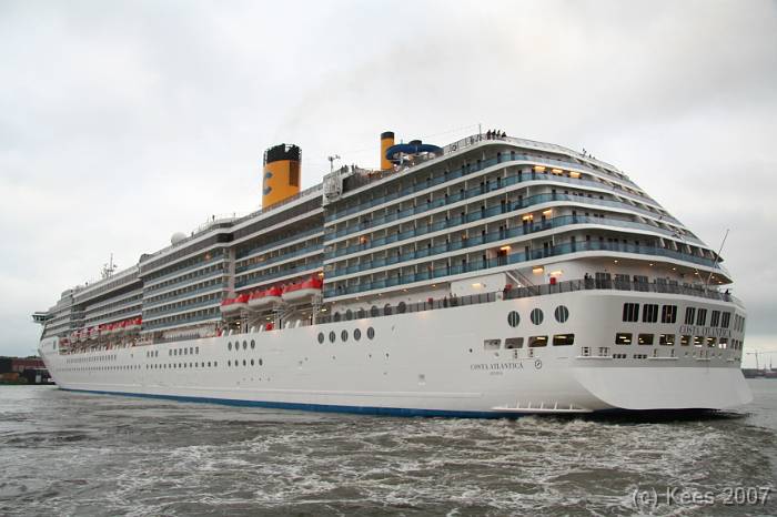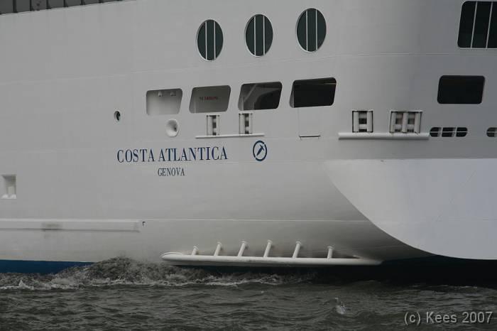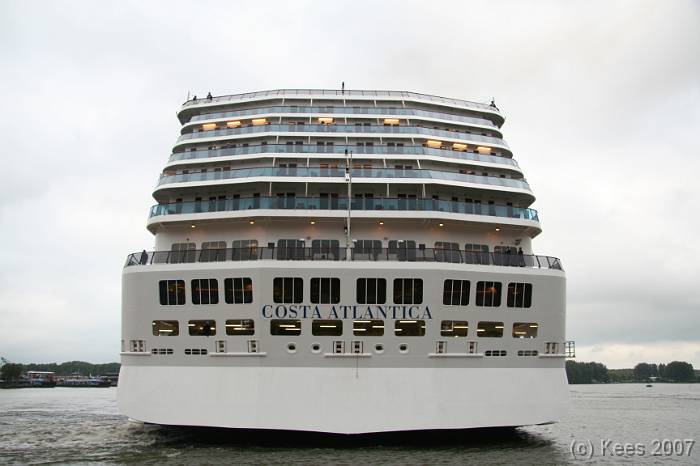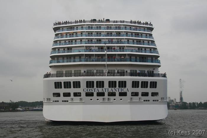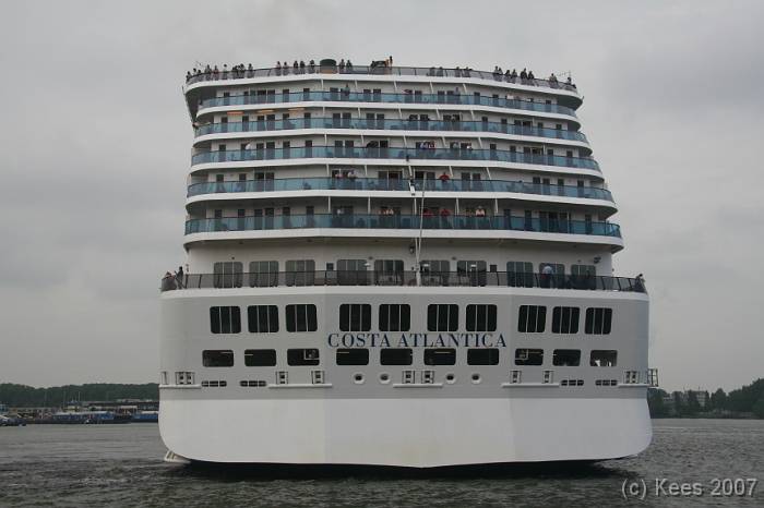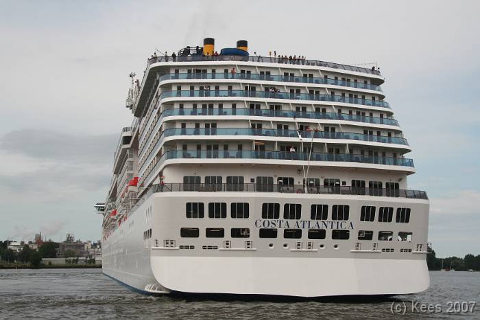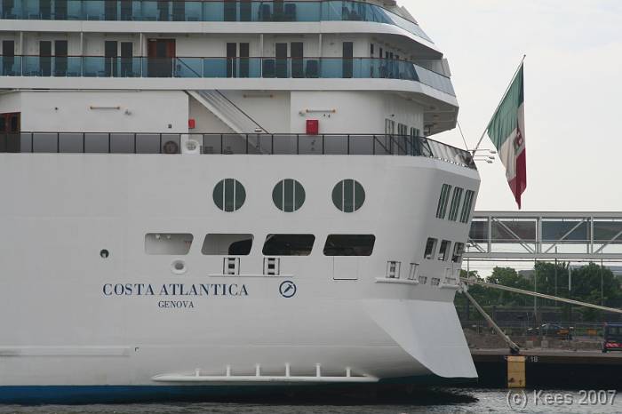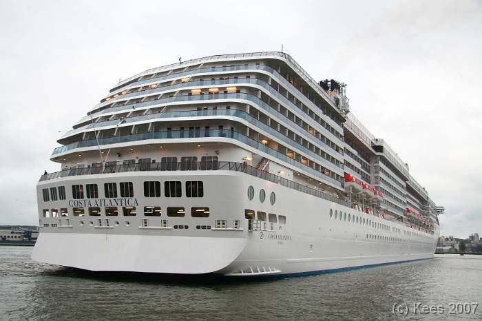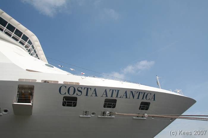 Cruiseschip Costa Atlantica 02-08-2007 Costa Atlantica – turn around Aankomst: 02/08/07 om 09.00 uur * Vertrek: 02/08/07 om 17.00 uur * Cruisemaatschappij: Costa Crociere Lengte: 293 meter Decks: 12 Passagiers: 2680 Vlag: Italie