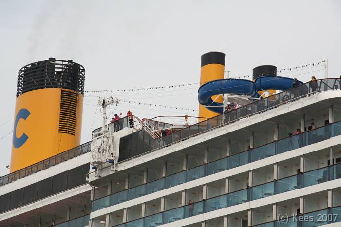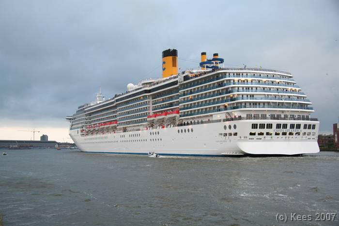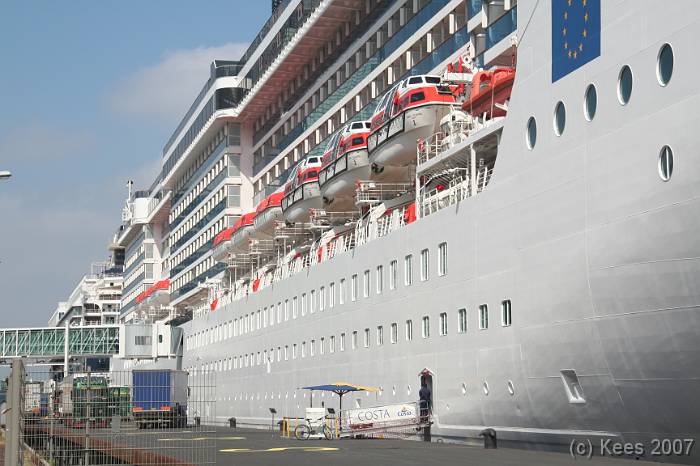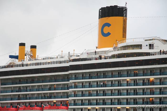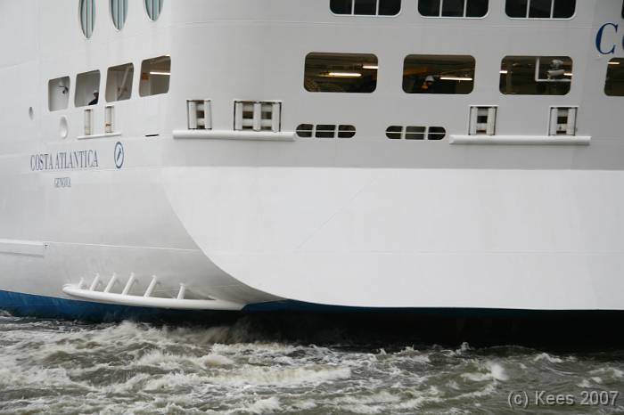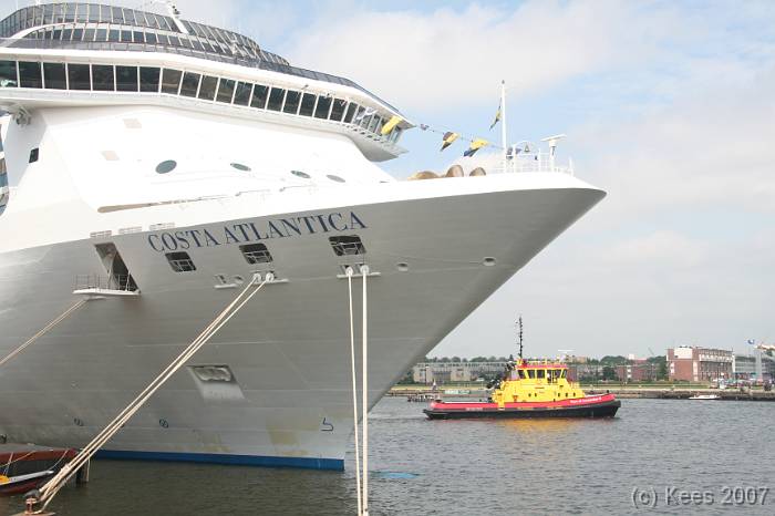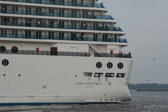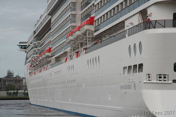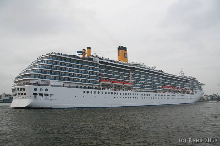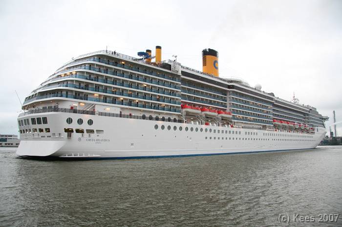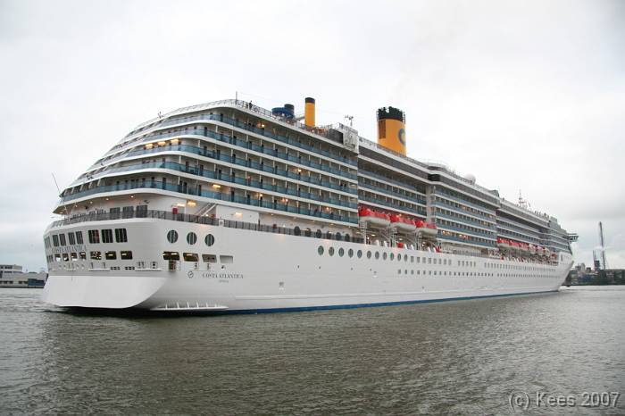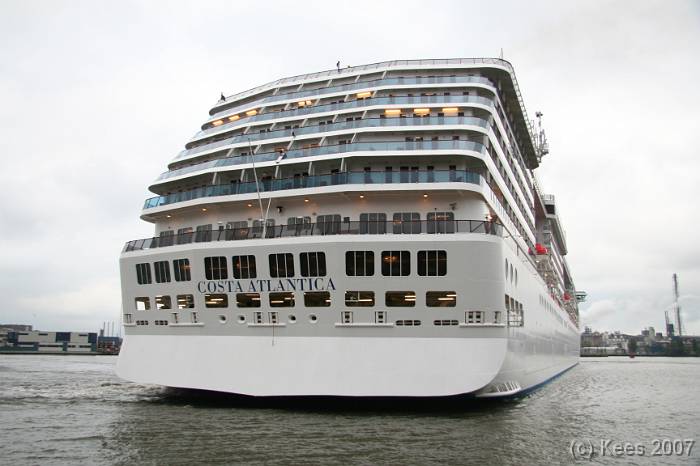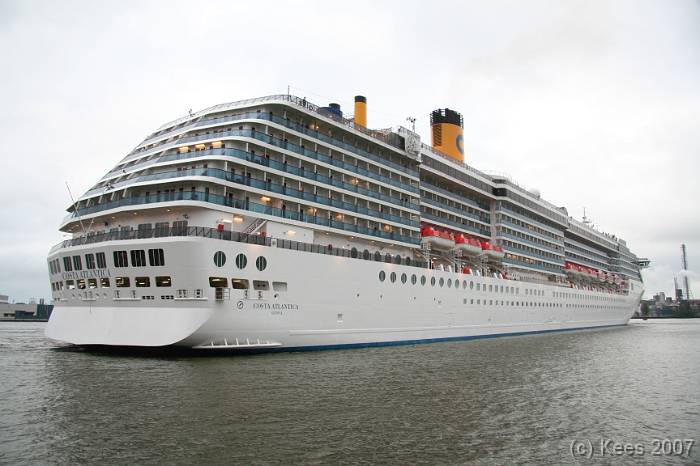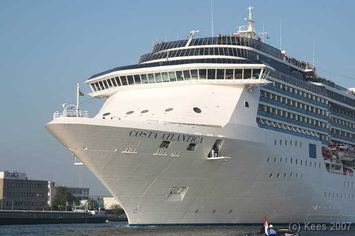 Cruiseschip Costa Atlantica 14-08-2007 Costa Atlantica – turn around Aankomst: 14/08/07 om 09.00 uur * Vertrek: 14/08/07 om 17.00 uur * Cruisemaatschappij: Costa Crociere Lengte: 293 meter Decks: 12 Passagiers: 2680 Vlag: Italie