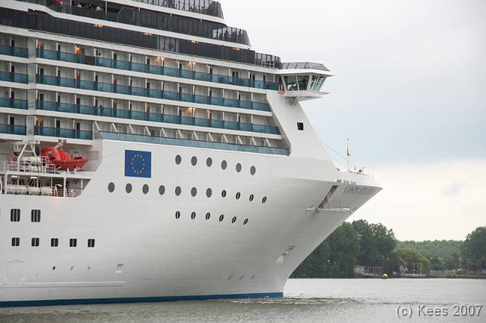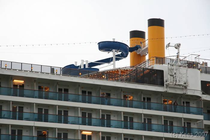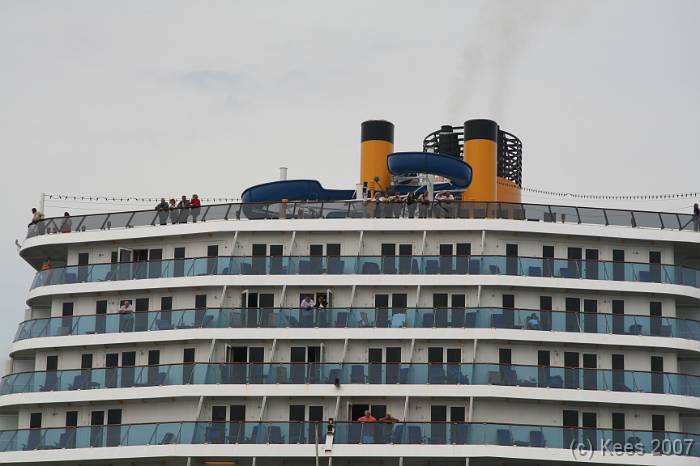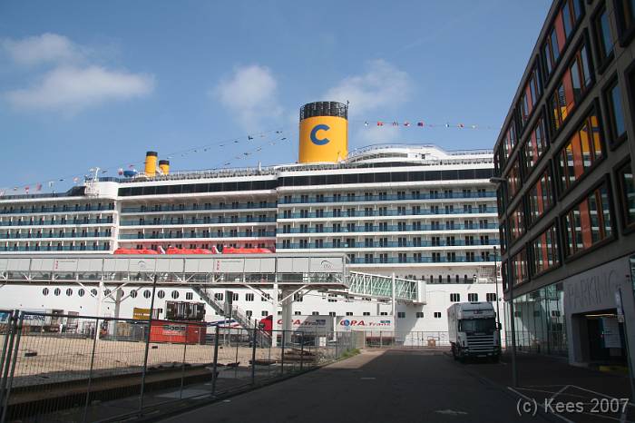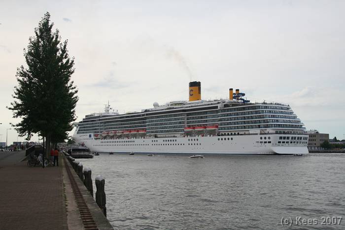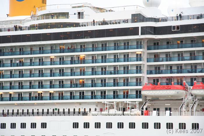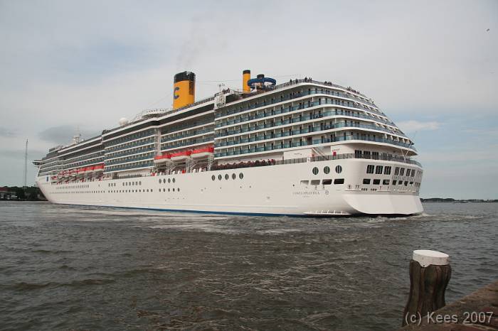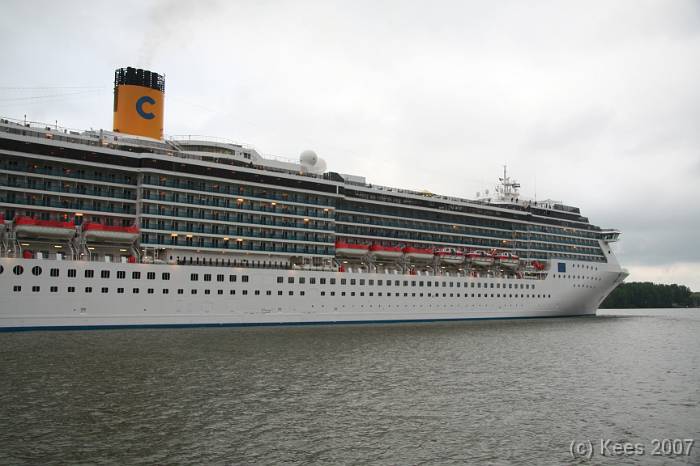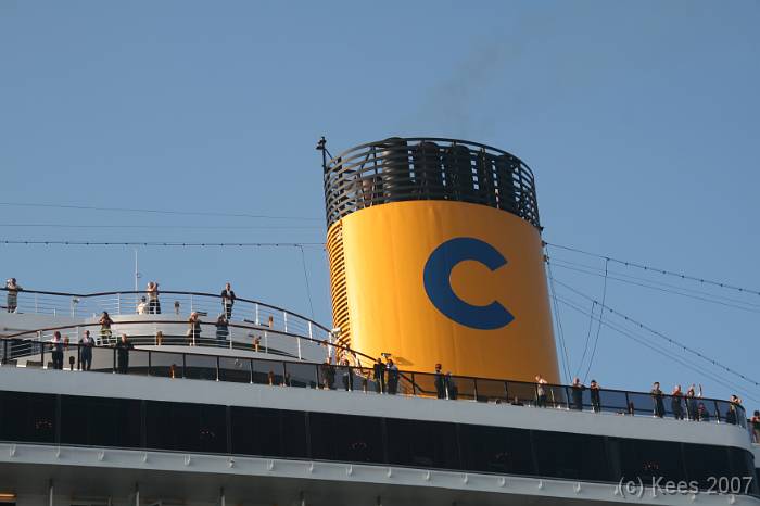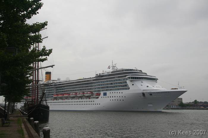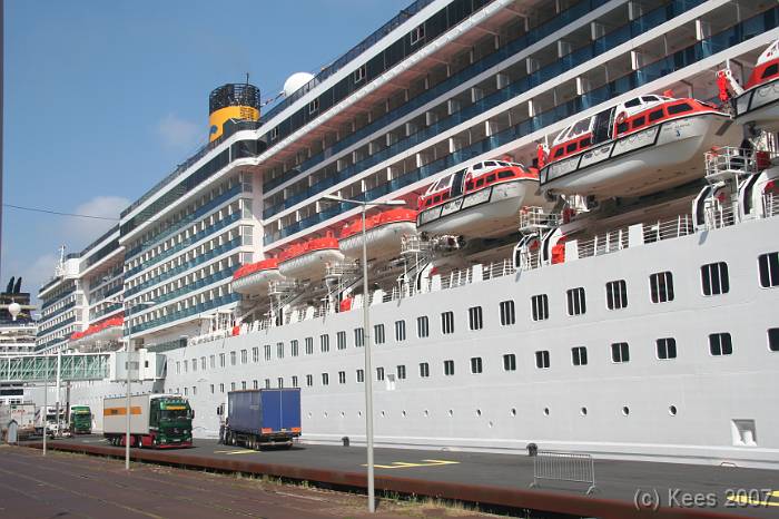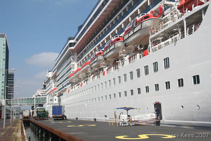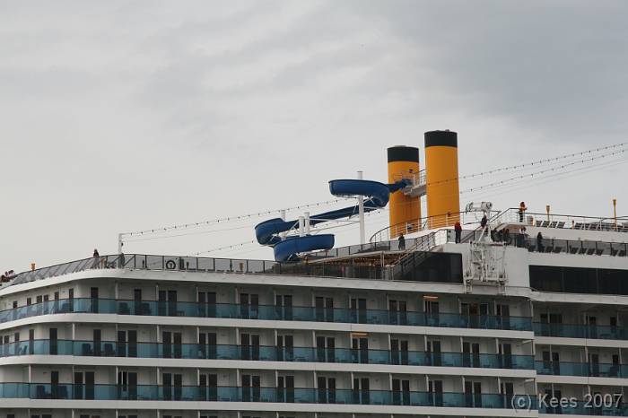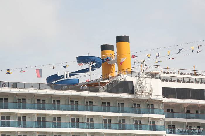 Cruiseschip Costa Atlantica 14-08-2007 Costa Atlantica – turn around Aankomst: 14/08/07 om 09.00 uur * Vertrek: 14/08/07 om 17.00 uur * Cruisemaatschappij: Costa Crociere Lengte: 293 meter Decks: 12 Passagiers: 2680 Vlag: Italie